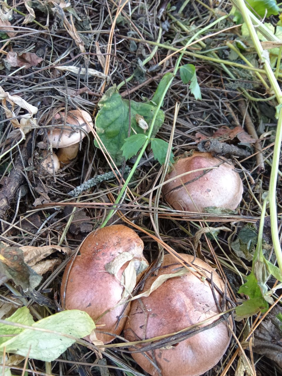 菌柄:粗壮且中空,长度约为菌盖直径的1-2倍,表面光滑,颜色与菌盖相近,基部常附着松针或腐殖质。